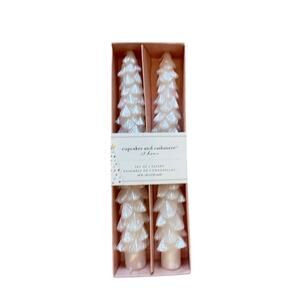 Cupcakes & Cashmere Iridescent White Christmas Tree Shaped Taper Candle Set 2