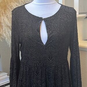Cupcakes & Cashmere Janna Burnout Velvet Shift w/Split Sleeves Black SZ Small