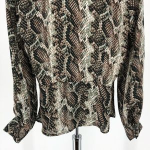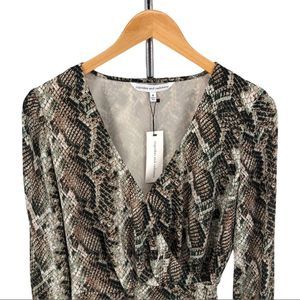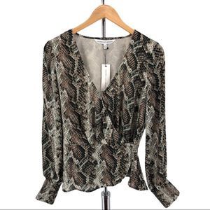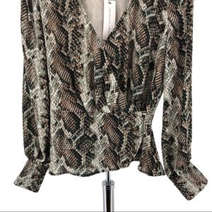 Cupcakes & Cashmere Jasper Wrap Blouse in Brown Snake Print NWT