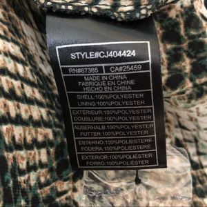 Fun Snake Print Blouse with a security button at inside waist, button at outside opposite waist, Surplice neckline, long sleeves, buttoned cuffs, fully lined.