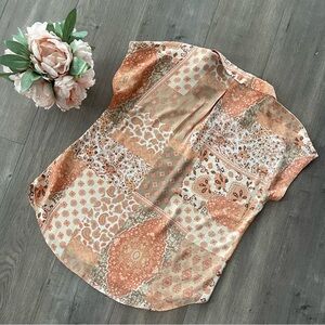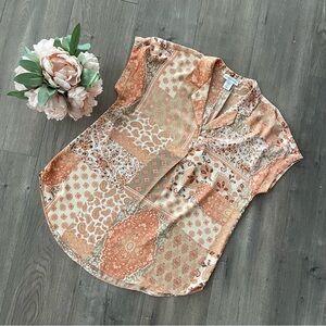 Cupcakes & Cashmere Mediterranean Peach Oversized V Neck Blouse
