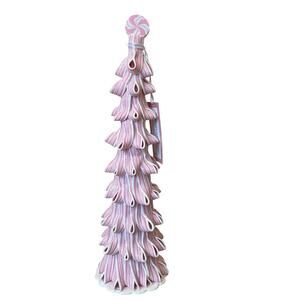 This Peppermint Tree Christmas figurine will add a POSH and festive touch to your Holiday decor. It's a pink and white striped candy cane decoration, perfect for tiered trays.