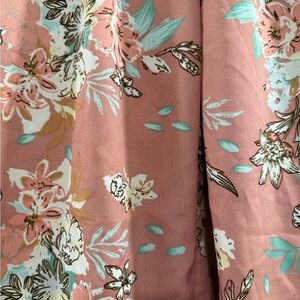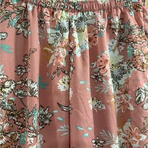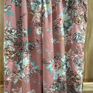 These casual pajama bottoms from Cupcakes & Cashmere feature a charming pink hue adorned with delicate white floral patterns. Crafted for comfort, they offer a relaxed fit perfect for lounging or casual outings. The soft material ensures a cozy feel, making them a delightful addition to your wardrobe. Size M, great condition other than missing the drawstring.