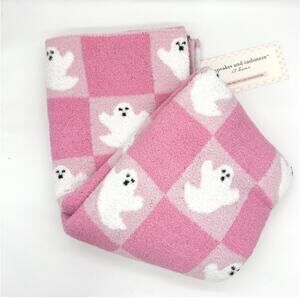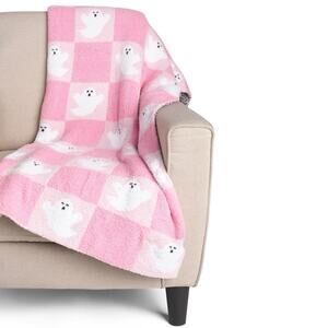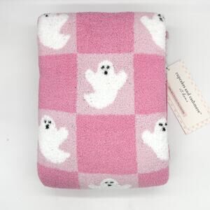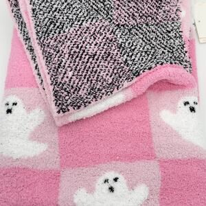 Cupcakes & Cashmere Pink & White Checkered Ghost Throw Blanket Halloween New