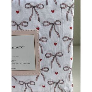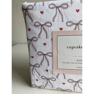 Cupcakes & Cashmere Pink Bows And Hearts KING SIZE Sheet Set Coquette NEW