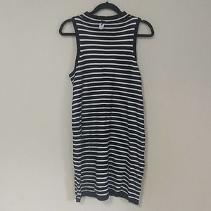 A loose Sweater Dress in classic two tone stripes, Sleeveless, unlined, ribbed edges.