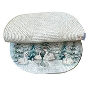 Cupcakes & Cashmere SWAN Braided Placemats 12x18 Christmas Holiday NEW