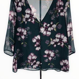 Cupcakes & Cashmere Tibet Floral V-Neck Button 3/4 Sleeve Blouse size Medium
