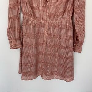 Cupcakes & Cashmere Tie Neck Dress Pink White Houndstooth Size Small