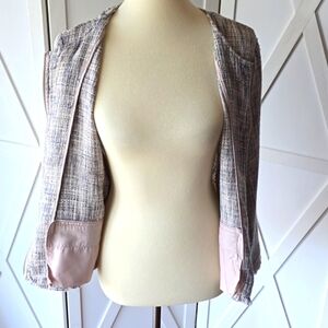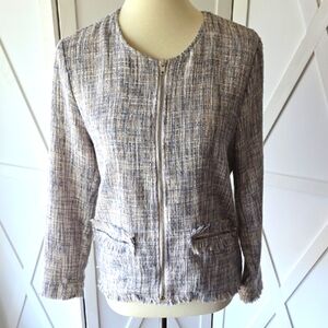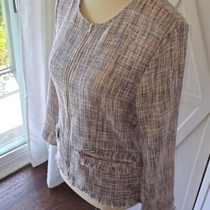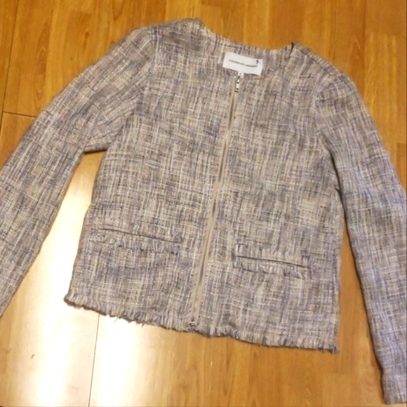 Cupcakes & Cashmere Tweed Zip Front Fringed Blazer