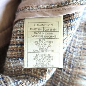 Elevate your style with this chic women's tweed jacket. Featuring a classic design, two front pockets, and a zip-up front. It's perfect for any occasion. The neutral tones make it versatile and easy to pair with any outfit, even jeans!