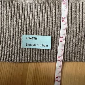 Size XS. Brown and tan animal print overall. Open pockets on front. Open front, no closure. Very soft, stretchy and thick warm knit material. Fabric blend is 50% Viscose, 29% Polyester, 21% Nylon. Machine Wash Cold. Sold on Revolve.