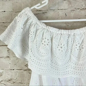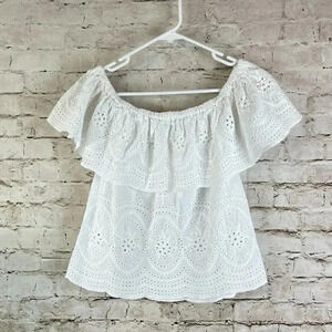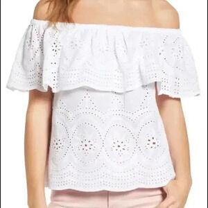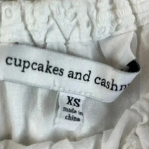 Women's Cupcakes and Cashmere Davy Eyelet Off Shoulder Top Size XS. White Eyelet, Ruffled with Scallop Hem. Made of 100% Cotton. Gently used, Please see pictures for details.
