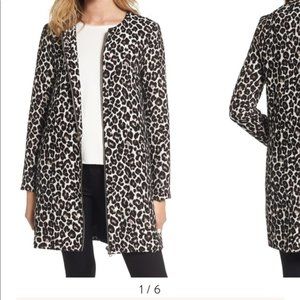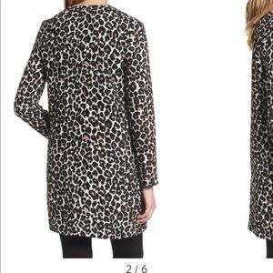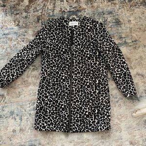 Like New. Zero wear or staining. Leopard Print. Colors: White, black, brown. Fully lined. Shell is 65% Rayon, 35% polyester. Lining is polyester. Medium weight. Lining is thin, so great for layering.
