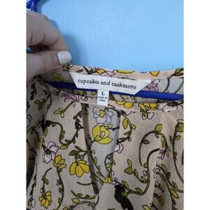 Cupcakes and Cashmere Beige & Multi Floral Ruffle Collar Bell Sleeve Top Large