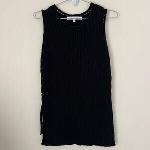 Cupcakes and Cashmere Black Knit Crewneck Sleeveless Sweater Size S
