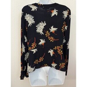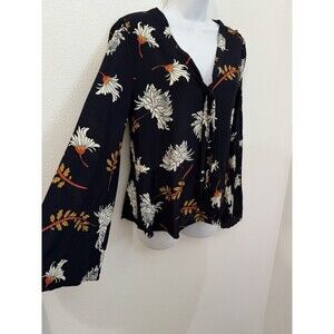 Cupcakes and Cashmere Blouse Floral Navy Blue V Neck Bell Sleeve Office Size M