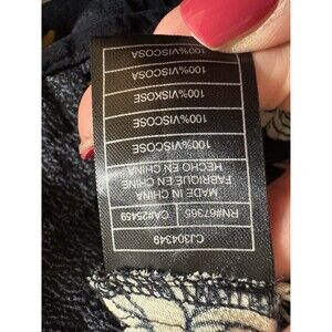 This Cupcakes and Cashmere Top features a beautiful floral pattern with bell sleeves and a v neck tie design. Made of lightweight and breathable polyester material with a relaxed fit, this V-neck blouse in navy blue is perfect for various occasions like travel, parties, work, or casual wear. Please note color looks to be a dark navy blue, but could also read as black. The bohemian and cottage core theme adds a stylish touch to this tunic-style top.