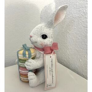 Easter Bunny Holding Macaroons, Cupcake & Cashmere Pink Bow.