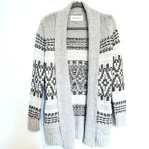 Cupcakes and Cashmere Raleigh Cardigan Jacquard Boho Sweater Gray Black Oversized