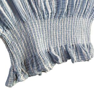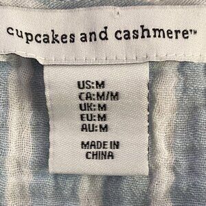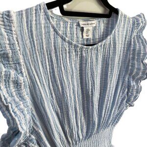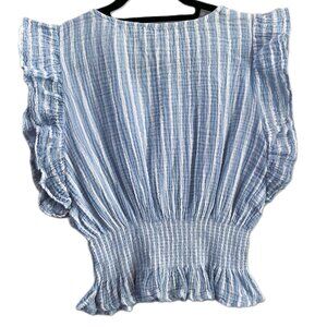 Cupcakes and Cashmere Cropped Cotton Flutter Sleeve Blue/white top | Size Medium