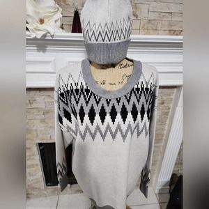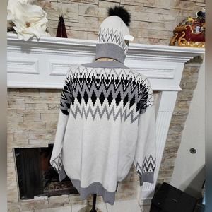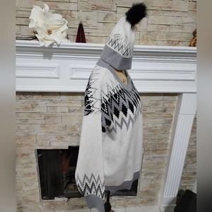 Cupcakes and Cashmere Faire aisle sweater and pom pom beanie hat plus size 1X