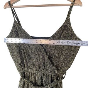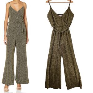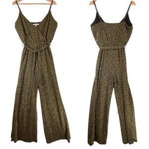 Cupcakes and Cashmere Gold Metallic Jumpsuit Flared Leg WOMENS SIZE SMALL Belt Shimmer