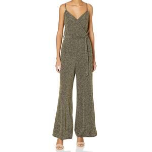 Cupcakes and Cashmere Gold Gauzy Jumpsuit Flared Leg WOMENS SIZE SMALL Shimmer