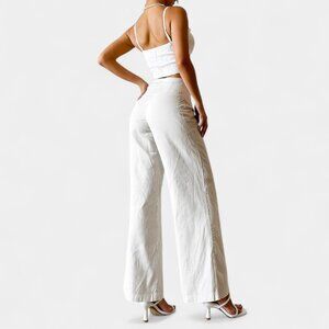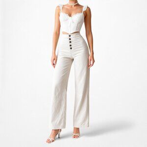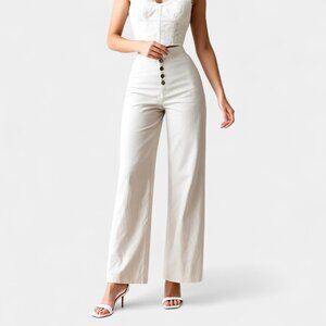 Features front button closure. Culotte cropped style. Linen feel fabric. Open wide leg. New without tags. Label is Cupcakes and Cashmere