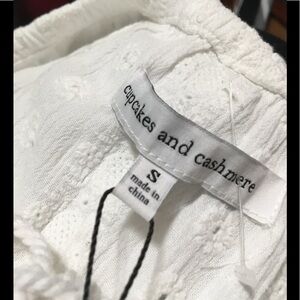NWT Cupcakes and Cashmere Malibu Embroidered Romper with Tassel Tie Lightweight knit features an embroidered eyelet detail for standout look.