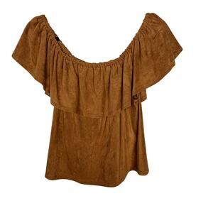 Cupcakes and Cashmere Medium Brown Tan Jennings Faux Suede Off The Shoulder Top