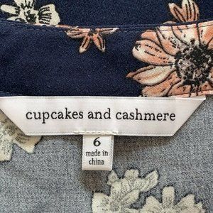 Cupcakes and Cashmere Navy Floral Neck Tie Ruffle Cap Sleeve Mini Dress Womens 6