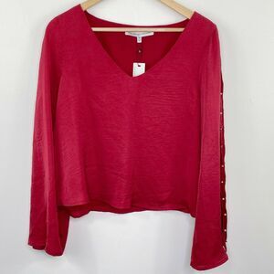 Cupcakes and Cashmere Perlanta Currant Red Satin Blouse Women's Size Medium M
