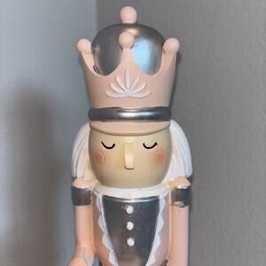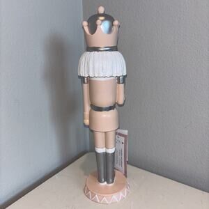 The product is a 14-inch Nutcracker Soldier King shaped decoration in a pastel pink color, perfect for the Christmas holiday season. Made of resin, this decorative item from the Cupcakes and Cashmere brand features intricate details and is part of their Pastel Cupcakes And Cashmere Christmas Holiday collection. The nutcracker design and pink color scheme make it a charming addition to any Christmas decor, bringing a touch of whimsy and festive flair to the holiday celebrations.