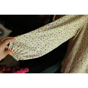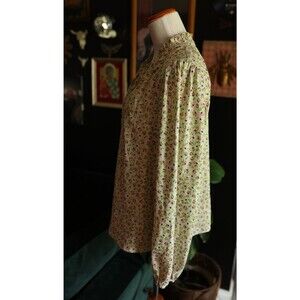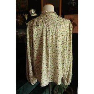 Cupcakes and Cashmere Pink Floral Print Ruffle Tie-Neck Long Sleeve Top, Size L