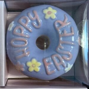 VERY CUTE Cupcakes and Cashmere Set of 3 Easter Ceramic Donut Decor!!! Each Donut is Different in the Set. 2 Say “Hoppy Easter” and the Other One is Sweetly Decorated