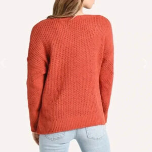 Cupcakes and Cashmere Maj Soft Boucle V-Neck Drop Needle Sweater Burnt Orange L