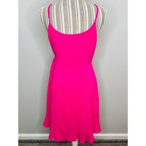 Cupcakes and Cashmere Vibrant Pink Ruffle True Wrap Rayon Dress with Adjustable Spaghetti Straps Women Small Barbiecore Brunch Femme Flirty Casual NWT