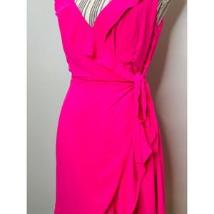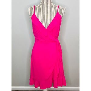 Cupcakes and Cashmere Vibrant Pink Ruffle Wrap Dress Women Small Barbiecore NWT