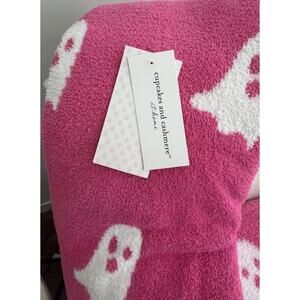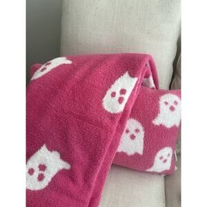 Cupcakes and Cashmere Viral Halloween Ghost Hot Pink Blanket and Pillow Set New