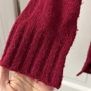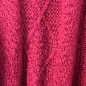 This Cupcakes and Cashmere burgundy wine sweater is loved but has a lot of love left in her. Good condition. A little high/low detail in the front with side paneling different knit than front and back detail.