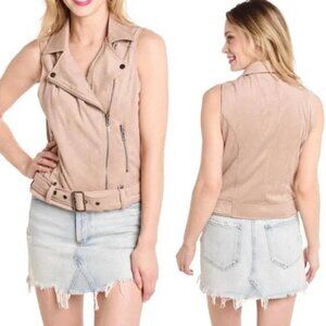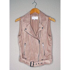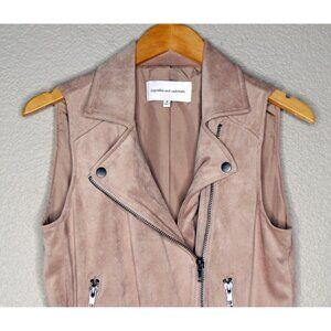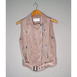 Cupcakes and Cashmere x Revolve Tan Faux Suede Moto Vest Sz Small Vegan