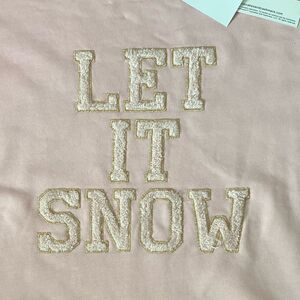 This listing is for a NWT's Cupcakes and Cashmere pink sweatshirt in size medium. The sweatshirt features "Let It Snow" and the front and three gold snowflakes on the back. Please see photos for measurements.