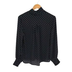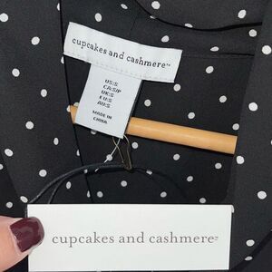 Cupcakes and Cashmere Womens Polka Dot Long Sleeve Blouse Black White Small NWT