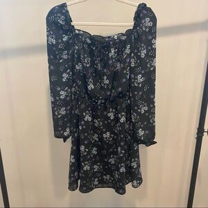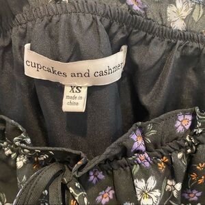 Cupcakes and cashmere dress. Sheer sleeve. Size xs. Square neckline. Pretty navy blue with flowers. Worn once. Excellent condition. Smoke and pet free home