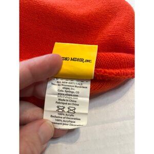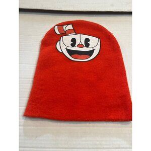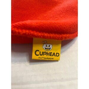 This vibrant red beanie features a playful Cuphead design, ideal for fans of the game. Crafted from soft acrylic, it provides warmth and comfort. This officially licensed Studio MDHR product showcases quality craftsmanship, making it a stylish addition to your cold-weather wardrobe. Small stain on the inside of the flap on the backside, see last photo.