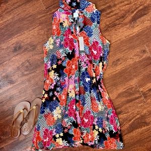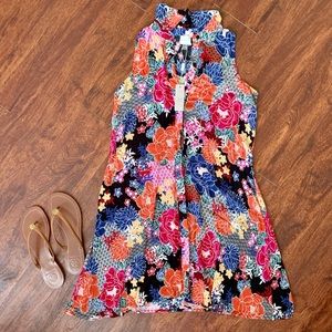 Cupio Floral Button Down Dress has a gorgeous floral print with beautiful vibrant colors! Super light weight, is sleeveless with collar and buttons all down the front. It is a relaxed fit and can be worn free flowing or you can add a belt for a more waist defined/mini dress look! 100% Viscose fabric makes it soft & luxurious!