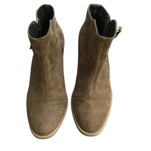 Cupid brown ankle booties with block heel, and zip closure. Pre owned see photos..