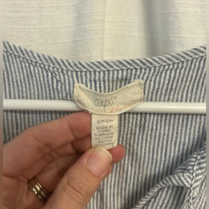 This is such a cute dress, but it’s just too small for me. It’s a linen type material with pinstripe blue and white. Perfect to throw on during the summer!