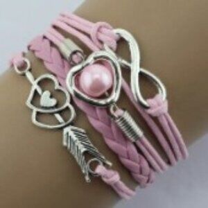 Design: Multi-layered rope bracelet with Cupid’s arrow, love symbols, and pearls